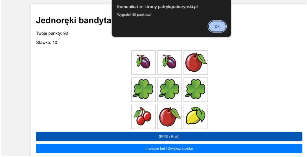 Portfolio Wczytywanie modeli 3d i ich podgląd. https://patrykgrabczynski.pl/3d/load Kolejna gra w stylu jędnoręki bandyta napisana w języku HTML, CSS i JavaScript. https://patrykgrabczynski.pl/hazard Tablica kanban ułatwiająca pracę napisana w języku HTML, CSS, JavaScript oraz użyto magazynu danych Local Storage. https://patrykgrabczynski.pl/kanban